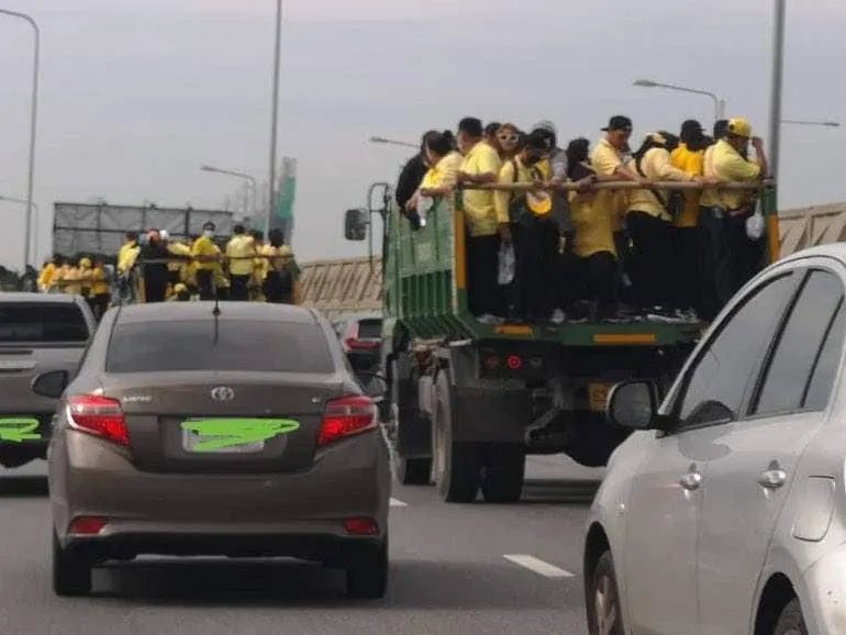 กลายเป็นที่ปรากฎในโลกออนไลน์เมื่อผู้ใช้รถได้ถ่ายภาพขณะที่รถบรรทุกของ กทม. ได้ขนคนเสื้อเหลือง ขึ้นบนทางด่วน พร้อมตั้งข้อสังเกตว่าผิดกฎหมายหรือไม่