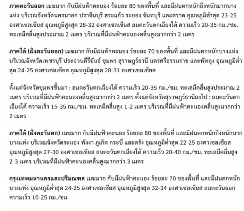 โดยจะทำให้บริเวณ ภาคเหนือตอนล่าง ภาคตะวันออกเฉียงเหนือ ภาคกลาง และภาคตะวันออกมีฝนตกหนักถึงหนักมากบางแห่ง กับมีลมแรง ฝุ่นละอองขนาดเล็ก เนื่องจากขณะนี้ประเทศไทยมีฝนตกต่อเนื่อง ดังนั้นสภาพอากาศไม่เอื้อต่อการสะสมของฝุ่นละออง หมอกควัน พย ากรณ์อากาศสำหรับประเทศไทยตั้งแต่เวลา 06.00 น.ของวันนี้ ถึงเวลา 06.00 น.ของวันที่ 17 ต.ค.นี้