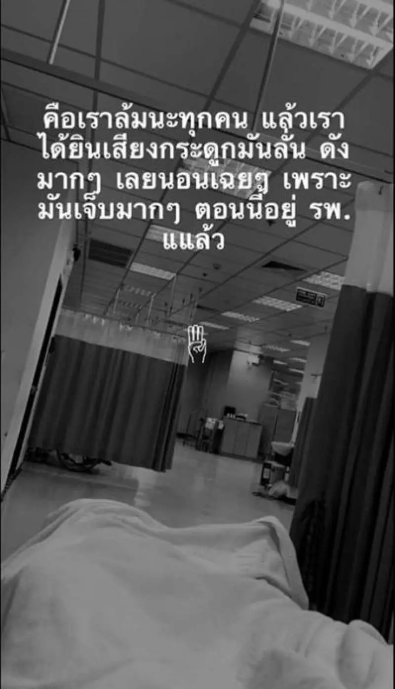 พร้อมกับรูปภาพที่นอนอยู่บนเตียงคนไข้ในโรงพยาบาลหัวเฉียว ซึ่งก็มีแคปชั่นในรูประบุว่า คือเราล้มนะทุกคน แล้วเราได้ยินเสียงกระดูกมันลั่น ดังมากๆ เลยนอนเฉยๆ เพราะมันเจ็บมากๆ ตอนนี้อยู่ รพ.แล้วส่วนอีกรูปมีข้อความว่า ก็คือ กระดูกตรงใกล้ๆ ตาตุ่มหัก แล้วก็ต้องพบหมอกระดูกอีกที เขาคิดว่าน่าจะต้องผ่าตัด เพราะกระดูกเคลื่อนเยอะพาสมควร ดามเฉยๆ ไม่น่าจะตรง