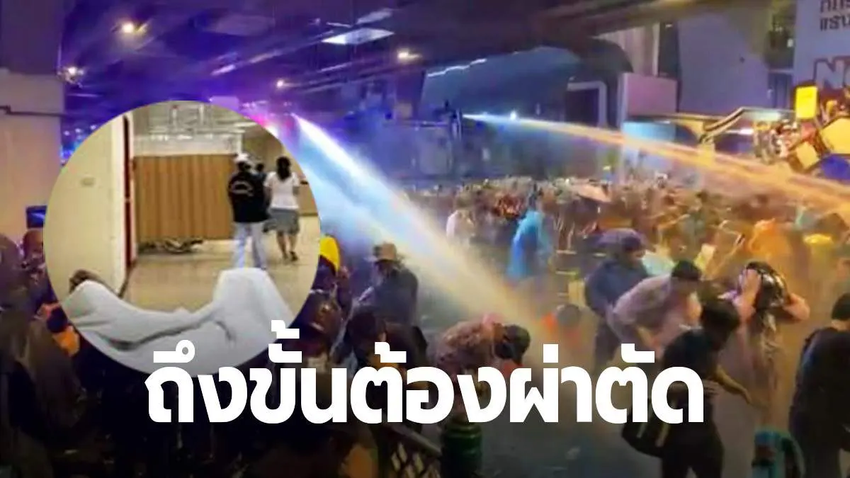 รุนแรงกว่าที่คิด หนึ่งในผู้ชุมนุมโดนฉีดน้ำใส่จนล้ม ต้องผ่าตัด