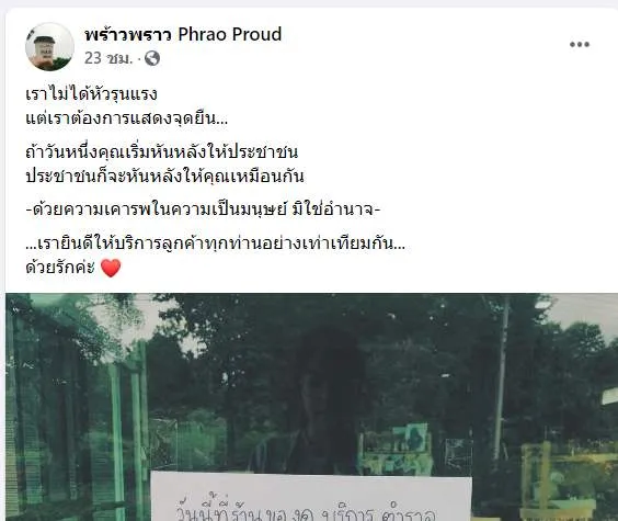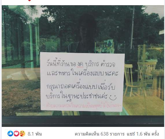 แห่อุดหนุนร้าน!! หลังสาวแขวนป้ายหน้าร้านข้อความ "วันนี้ที่ร้านของดบริการตำรวจและทหารในเครื่องแบบ.."