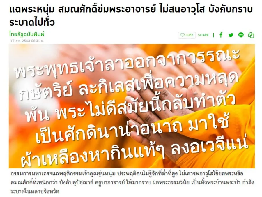 จากรายงานข่าวว่า “แฉพระหนุ่ม สมณศักดิ์ข่มพระอาจารย์ ไม่สนอาวุโส บังคับกราบ ระบาดไปทั่ว กรรมการมหาเถรฯแฉพฤติกรรมเจ้าคุณรุ่นหนุ่ม ประพฤติตนไม่รู้จักที่ต่ำที่สูง ไม่เคารพอาวุโสใช้ยศพระหรือสมณศักดิ์ที่เหนือกว่า บังคับอุปัชฌาย์ ครูบาอาจารย์ ให้มากราบ ผิดพระธรรมวินัย เป็นทั้งพระบ้านพระป่า กำลังระบาดในหลายจังหวัด (ไทยรัฐ 17 ตุลาคม 2563)