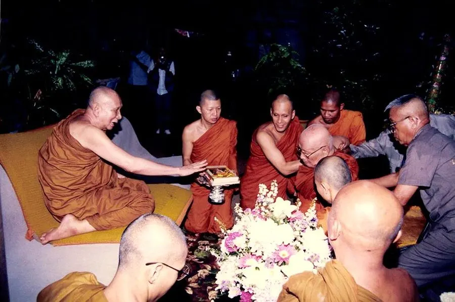 - 28 กุมภาพันธ์ 2533 สมเด็จพระสังฆราชได้เสด็จมาทรงกราบนมัสการพระราชนิโรธรังสีคัมภีรปัญญาวิศิษฏ์ (หลวงปู่เทสก์ เทสรังสี) (เกิด 2445 บรรพชา 2466) <9> ณ วัดหินหมากเป้ง ต.พระพุทธบาท อ.ศรีเชียงใหม่ จ.หนองคาย <10>