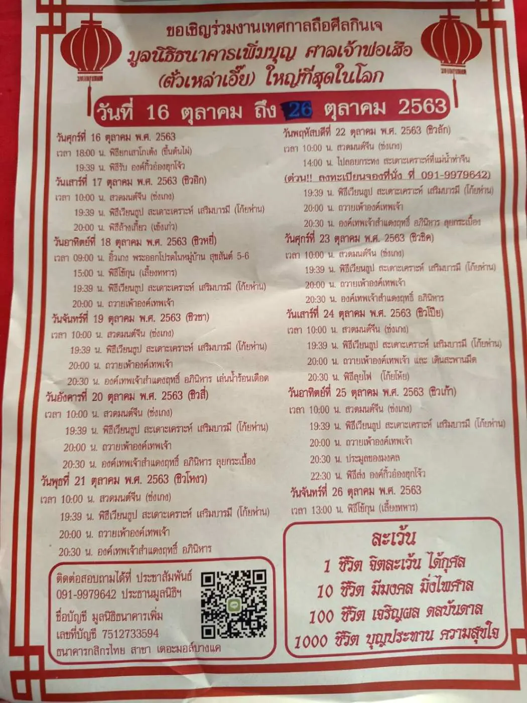 ประชาชนชาวบ้านที่มาศาลเจ้า ได้รับมอบจากทางศาลเจ้า เพื่อความเป็นศิริมงคลแก่ตนเอง และ ครอบครัว...