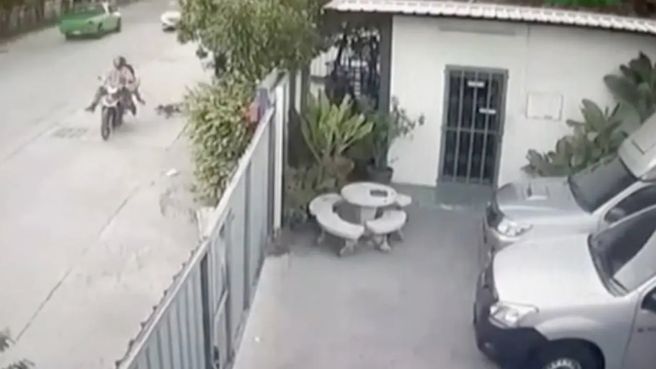 ภาพจากกล้องวงจรปิดหน้าบ้านหลังหนึ่งภายในซอยหนองข้างคอก จะเห็นรถวิ่งกันตลอดเวลาเนื่องจากเป็นช่วงเช้า แล้วมีรถ จยย.วิ่งมาจู่ๆ สุนัขตัวหนึ่งก็วิ่งออกมาตัดหน้ารถ จยย.ทำให้รถ จยย.สะบัดแต่ไม่ล้ม ร่างผู้หญิงที่นั่งซ้อนท้ายร่วงจากท้ายรถ จยย.ศีรษะฟาดพื้น