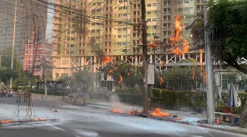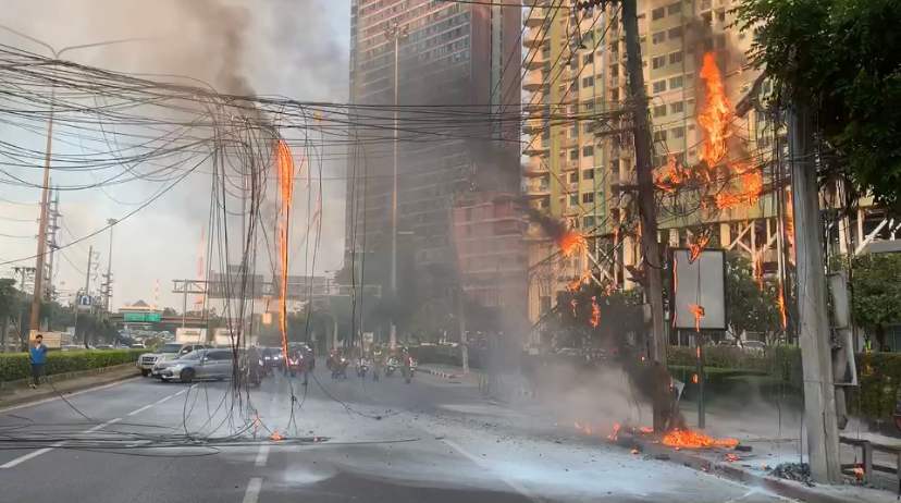บริเวณกลางถนนรัชดาภิเษก ขาเข้า บริเวณช่วงหน้าคอนโดมิเนียมศุภาลัยปาร์ค แขวงและเขตจตุจักร กทม. ทางเจ้าหน้าที่ได้เข้าไปตรวจสอบพร้อมประสานเจ้าหน้าที่ดับเพลิงและเจ้าหน้าที่การไฟฟ้านครหลวง ที่เกิดเหตุห่างจากช่วงทางลงสะพานรัชวิภา ประมาณ 100 เมตร พบเพลิงกำลังลุกไหม้สายไฟ เป็นแนวยาวส่งผลทำให้สายไฟบางส่วนขาดลงมาขวางบนพื้นถนนเต็ม 4 ช่องทาง ทำให้รถยนต์ไม่สามารถสัญจรผ่านไปมาได้ เจ้าหน้าที่จราจร จึงต้องปิดถนนชั่วคราว ส่งผลให้การจราจรมีเริ่มติดขัดระยะทางยาว ถึงแยกประชานุกูล เมื่อเจ้าหน้าที่ดับเพลิงมาถึงได้ใช้ถังเคมีดับเพลิงทำการฉีดดับไฟใช้เวลากว่า 20 นาทีจึงสามารถดับไฟเอาไว้ได้