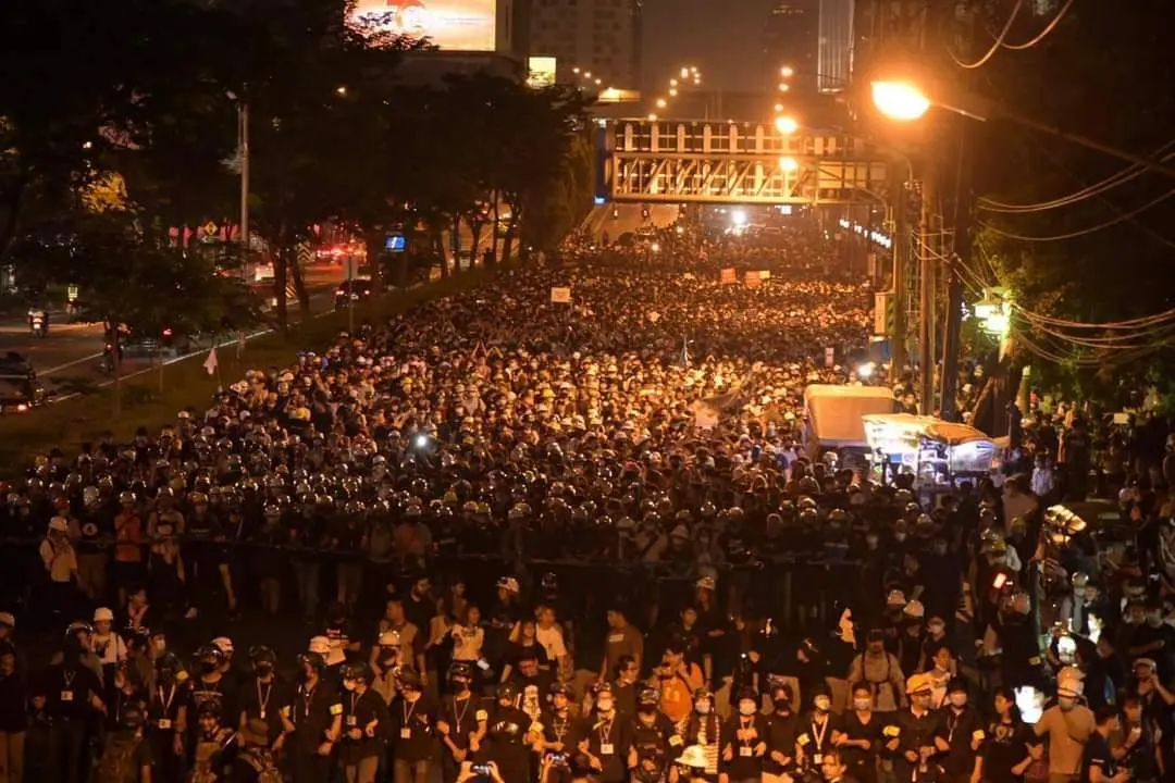 ประชาชนนับแสนร่วมกันเดินขบวนอย่างสามัคคีจากแยกสามย่านไปยังสถานทูตเยอรมนีเพื่อยื่นหนังสือให้มีการตรวจสอบการใช้พระราชอำนาจของกษัตริย์วชิราลงกรณ์เหนือดินแดนเยอรมนี เพื่อยืนยันในหลักการของระบอบประชาธิปไตยที่กษัตริย์อยู่ภายใต้รัฐธรรมนูญอย่างแท้จริง
