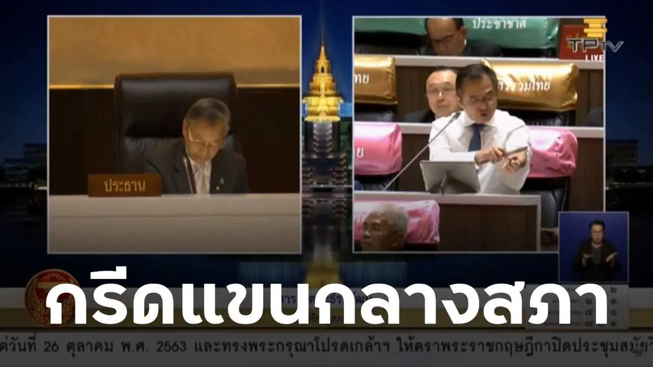 สภาเดือดจัด! สส พรรคเพื่อไทยกรีดแขนกลางสภา เพื่อเรียกร้องให้ประยุทธ์ลาออก