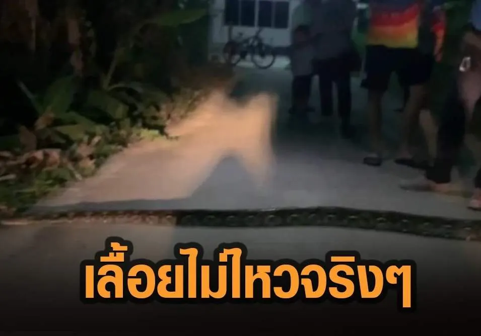 เหลือมยักษ์...นอนขวางถนน อิ่มจัด ไปไม่ไหว