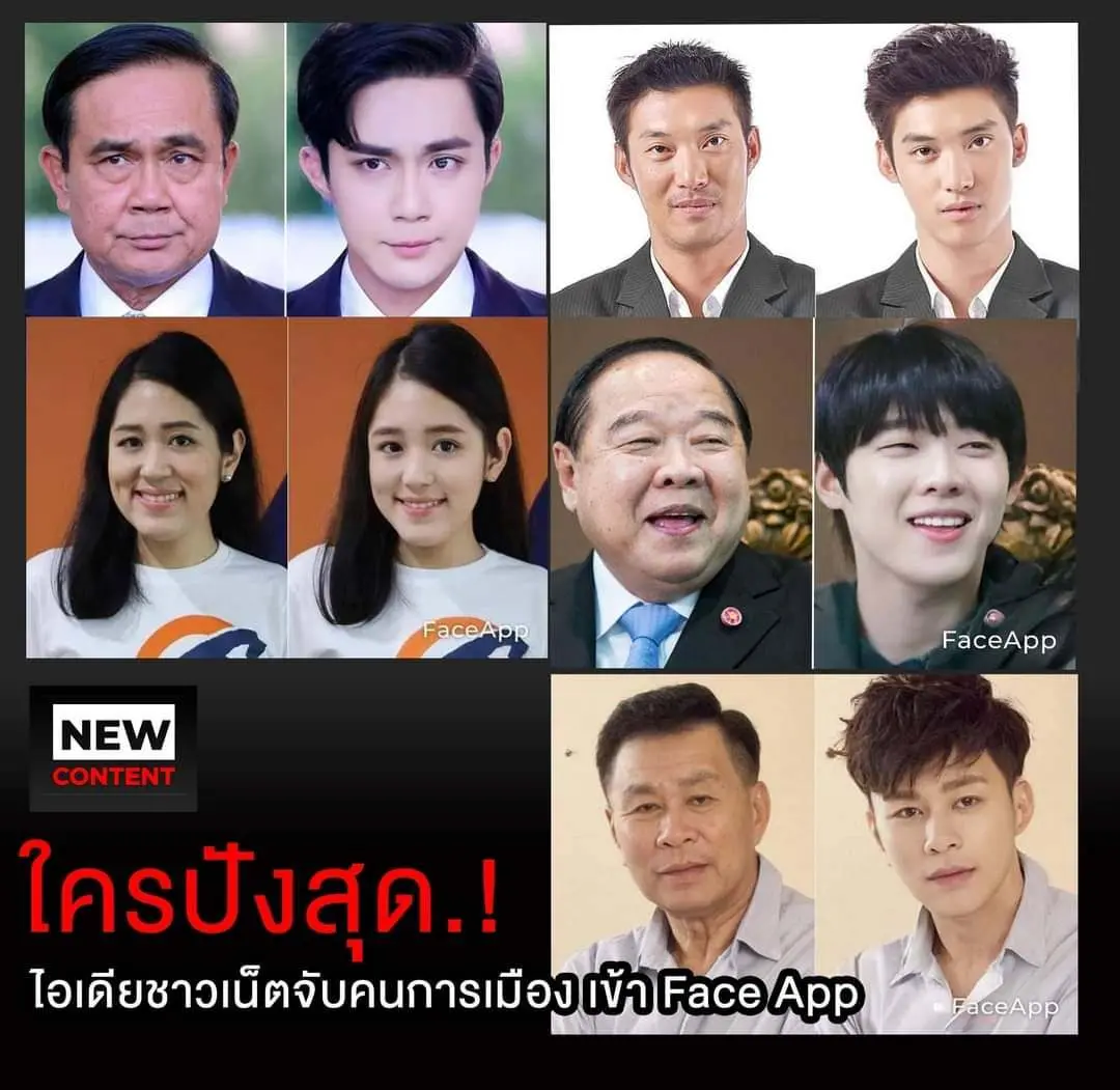เมื่อกลุ่มผู้ใช้โซเชียลนคนการเมืองมาเข้าแอพลิเคชั่น Face App ให้หน้าเด็กลง