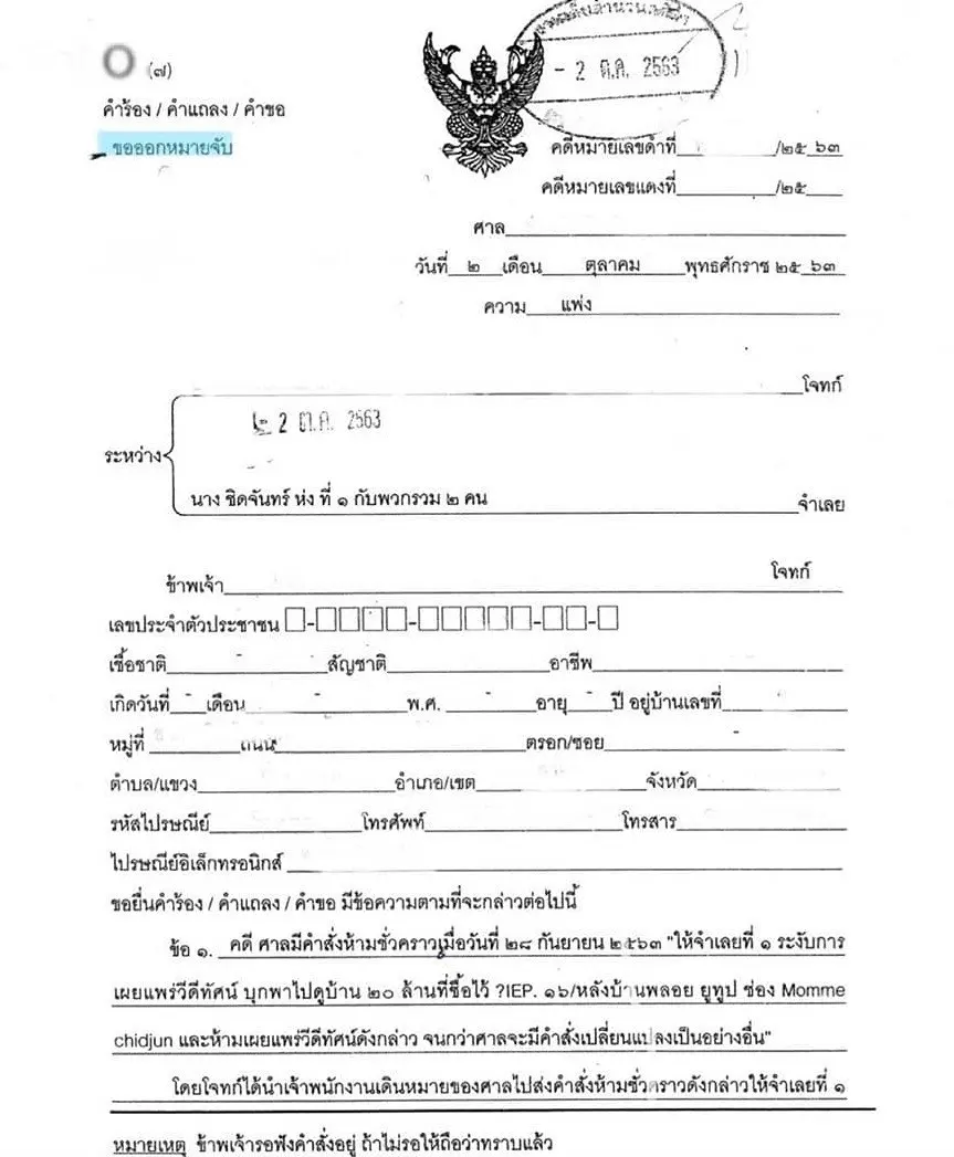 30 ต.ค 2563 หวิดถูกจับ! "พลอย ชิดจันทร์" ถูกคู่กรณีเจ้าของโครงการบ้านขอออกหมายจับ โดยอ้างว่า "พลอย"มีเจตนาฝ่าฝืนคำสั่งศาล เพราะยังมีการเผยเเพร่คลิปวิดีโอดังกล่าวอยู่ จึงขอออกหมายจับมากักขังเพื่อลงโทษ เเละล่าสุดศาลได้ "ยกคำร้อง" ไปแล้ว