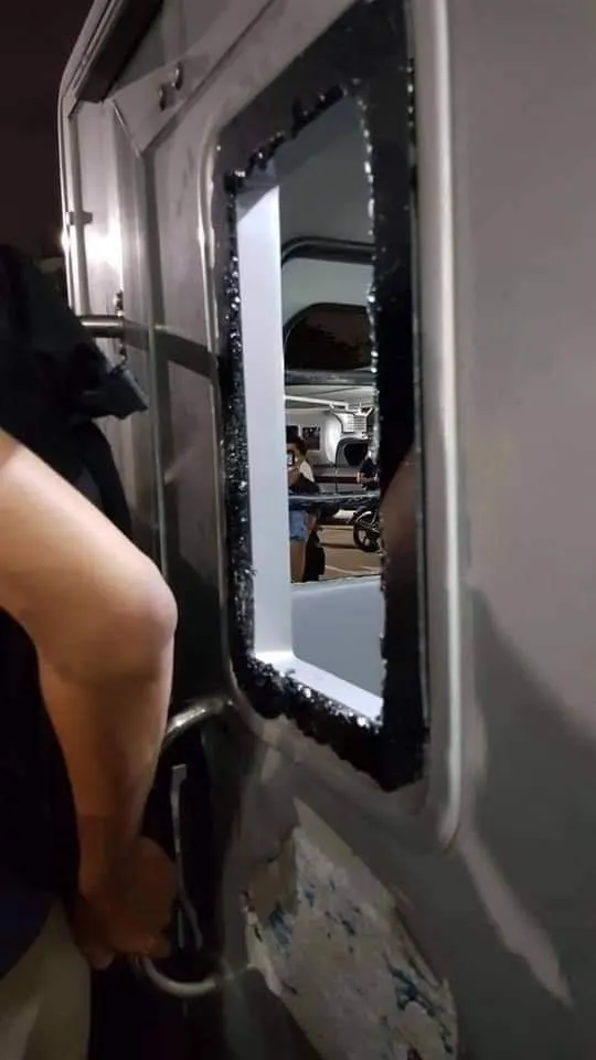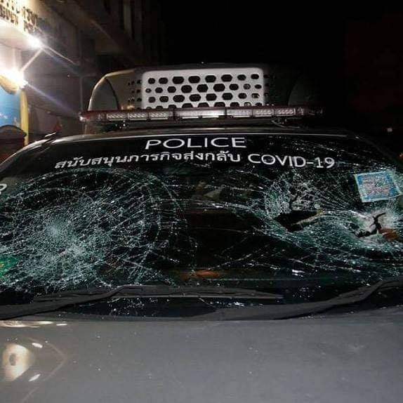 เพจดังโพสต์ มวลชนปิดล้อม -ทุบพังรถ ตร. เพื่อให้ปล่อยตัว "เพนกวิน-ไมค์-รุ้ง"