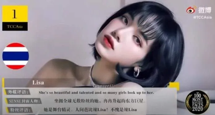 4 พ.ย. 2563 “ลิซ่า” ลลิษา มโนบาล สาวไทยวัย 23 ปี หนึ่งในสมาชิกวง “BLACKPINK” เกิร์ลกรุ๊ปเกาหลีที่โด่งดังระดับโลก ล่าสุด ผงาดคว้าอันดับ 1 จากการจัดอันดับ 100 คนดังที่มีใบหน้าสวยที่สุดในเอเชีย ประจำปี 2020 (100 most beautiful faces in Asia-Pacific 2020) ของ TCCAsia โดยคัดเลือกจากดารา นักร้อง คนดังทั่วเอเชีย และการโหวตจากแฟนคลับ