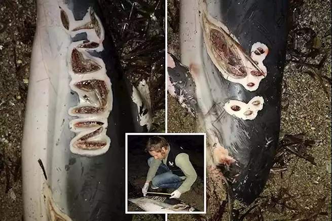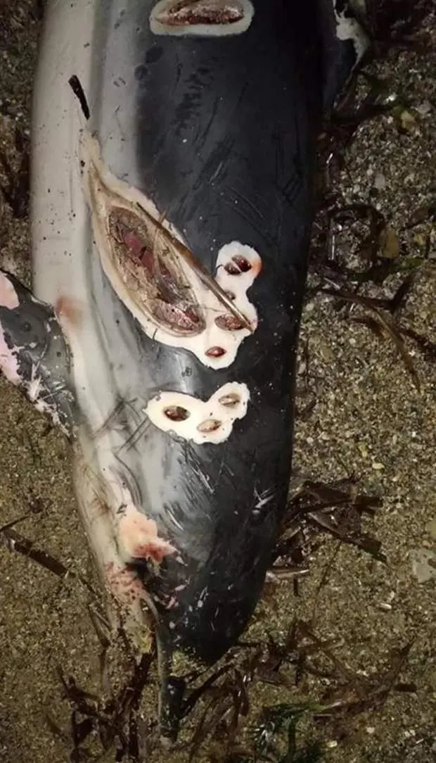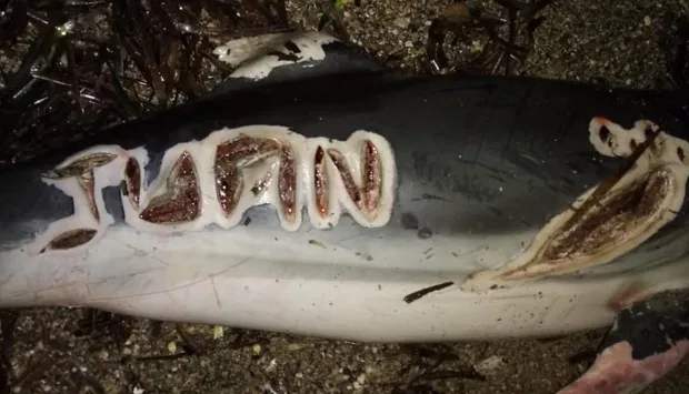 น่าสยดสยอง พบซากโลมาหัวขาด ตัวขาด ร่างกายถูกสลักชื่อ Juan บนชายหาดของสเปน