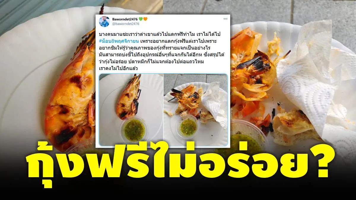 ดราม่าสนั่น!! สาวเผย กุ้งฟรี "ทราย เจริญปุระ" ที่นำมาแจก "ไม่อร่อย" ไม่ไปกินอีกแล้ว..แต่ดูดจนหัวกุ้งแห้ง?