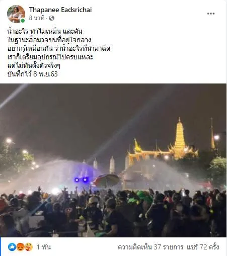 เดือด! องค์การนักศึกษา มธ. แถลงประณามเจ้าหน้าที่รัฐ หลังมีการฉีดน้ำใส่ผู้ชุมนุม