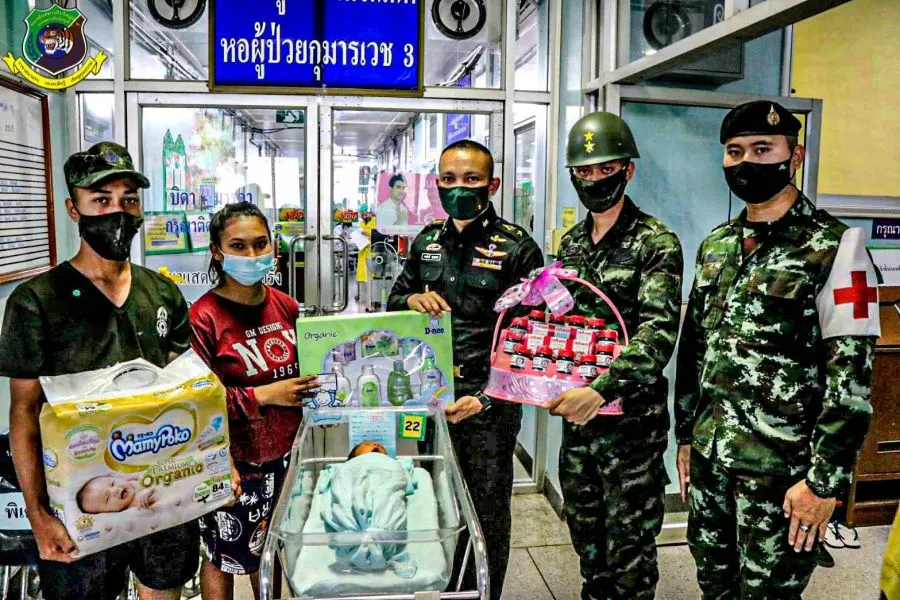 “ชื่นใจ พ่อแม่ลูก พร้อมหน้าพร้อมตา” ผู้บังคับกองพันทหารปืนใหญ่ที่ 4 พาน้องทหารใหม่ เยี่ยมภรรยาคลอดบุตรชาย สัมผัสที่อบอุ่นจากสองมือ "พ่อ"