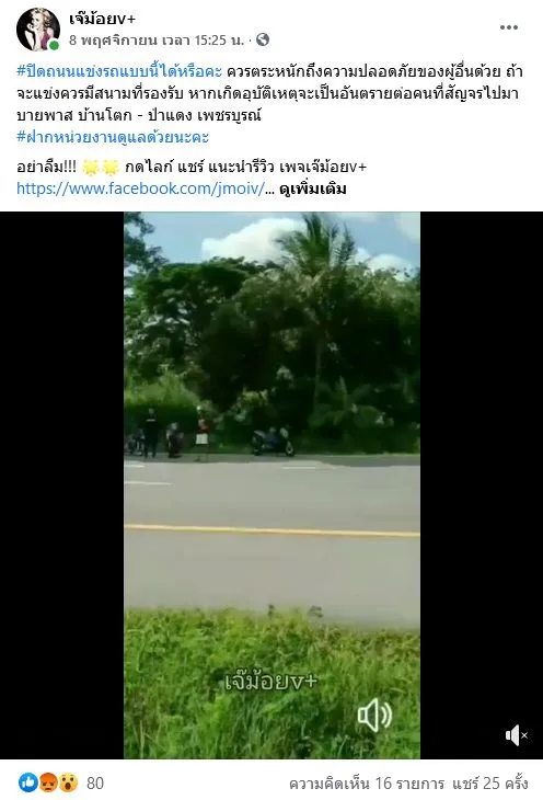 #ปิดถนนแข่งรถแบบนี้ได้หรือคะ ควรตระหนักถึงความปลอดภัยของผู้อื่นด้วย ถ้าจะแข่งควรมีสนามที่รองรับ หากเกิดอุบัติเหตุจะเป็นอันตรายต่อคนที่สัญจรไปมา บายพาส บ้านโตก - ป่าแดง เพชรบูรณ์