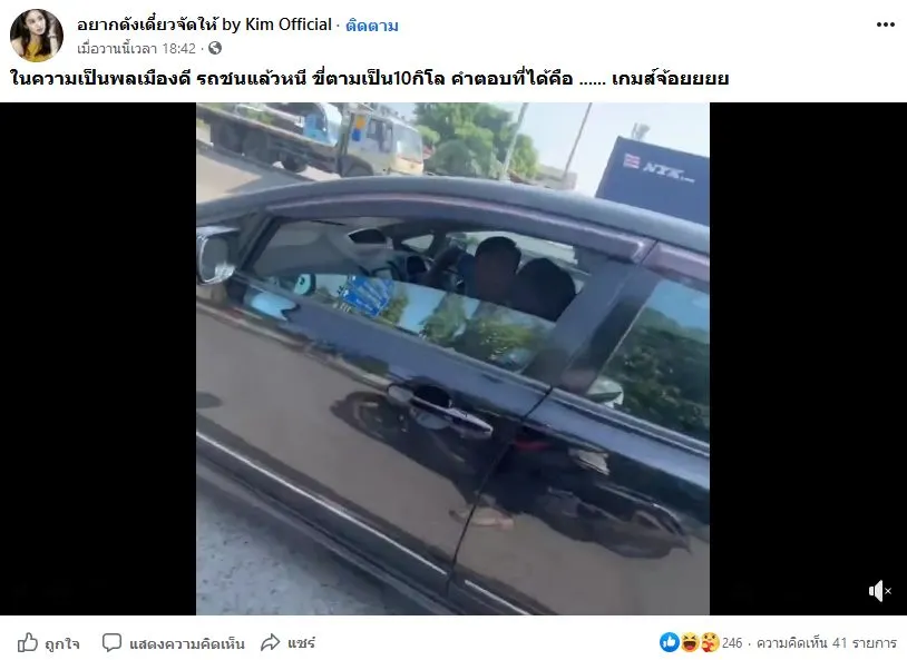 ในความเป็นพลเมืองดี รถชนแล้วหนี ขี่ตามเป็น10กิโล คำตอบที่ได้คือ ...... เกมส์จ้อยยยย