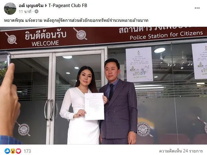"หยาดพิรุณ" เข้าแจ้งความ อ้างถูกผู้จัดการส่วนตัว ยักยอกทรัพย์ จำนวนหลายล้านบาท