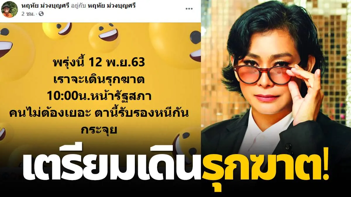 "อุ๊ หฤทัย" โพสต์ปลุกระดม พรุ่งนี้เราจะเดินรุกฆาตหน้ารัฐสภา