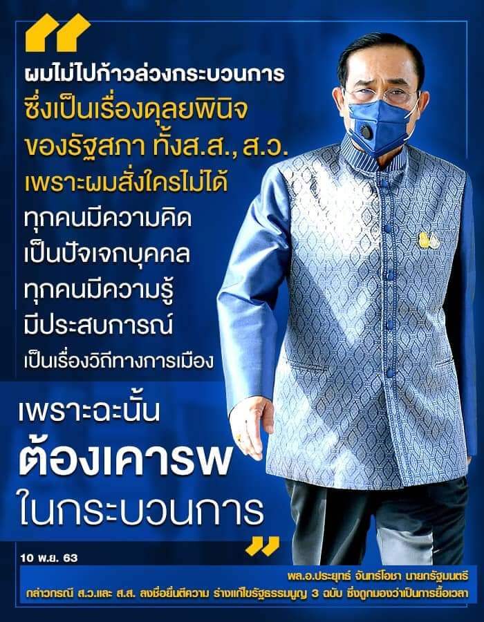ผมสั่งใครไม่ได้ ทุกคนมีความคิด เป็นปัจเจกบุคคล ทุกคนมีความรู้ มีประสบการณ์ เป็นเรื่องวิถีทางการเมือง เพราะฉะนั้น ต้องเคารพในกระบวนการ