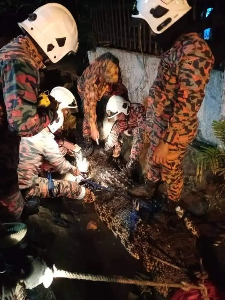 มาเลเซีย : ซาราวัก จระเข้ยักษ์ #เจ้าหน้าที่จับ จระเข้ยักษ์น้ำหนัก 800 กิโลกรัม ยาว 4.5 เมตร ในท่อระบายน้ำหลังโรงเรียน