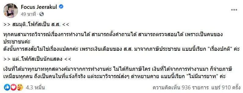 "โฟกัส จิระกุล" โพสต์แรง สมมุติถ้าโฟกัสเป็น สส.