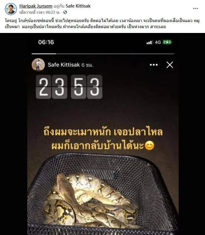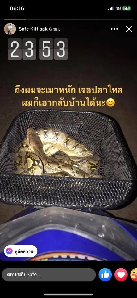 หนุ่มเมาหนัก! คว้า งู ใส่ตะกร้ารถกลับบ้าน ถ่ายอวดลงโซเชียล ว่าจับปลาไหลได้