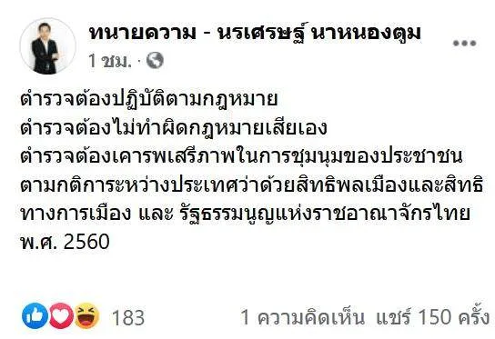 ทนายเตือน! ตำรวจมีหน้าที่อำนวยความสะดวกแก่การชุมนุม อย่าทำผิดกฎหมาย #ม็อบ14พฤศจิกา