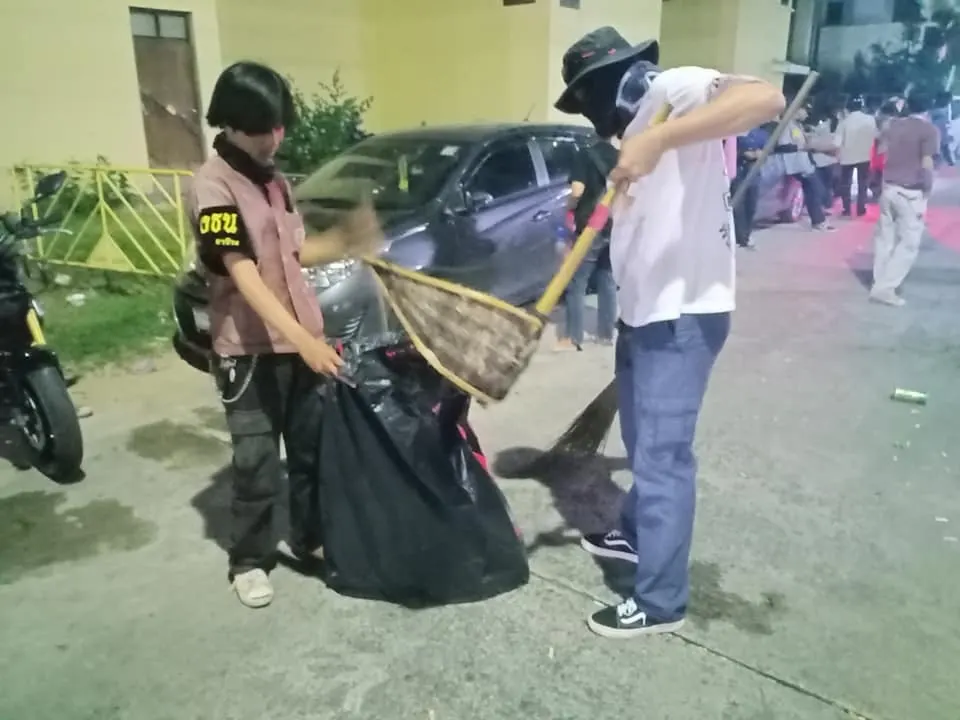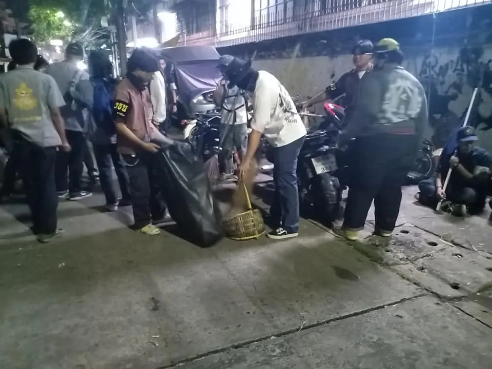 ชื่นชม "อาชีวะ" ร่วมใจเก็บกวาดขยะ ทำความสะอาด หลังม็อบเลิกชุมนุม