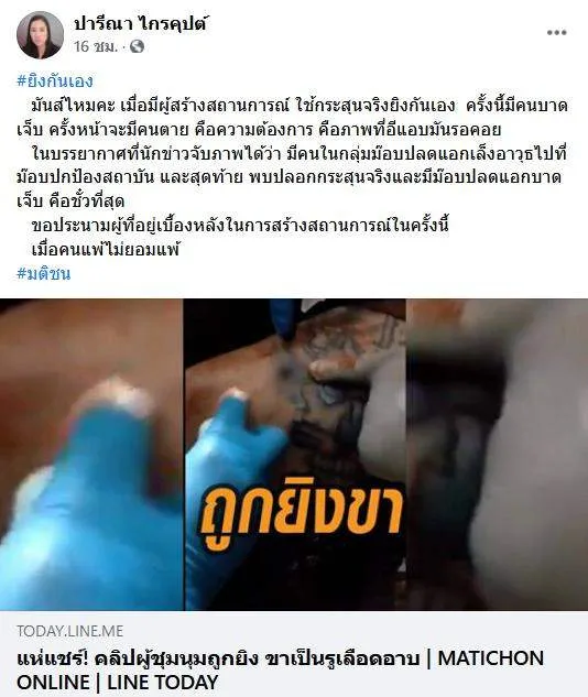 มันส์ไหมคะ เมื่อมีผู้สร้างสถานการณ์ ใช้กระสุนจริงยิงกันเอง ครั้งนี้มีคนบาดเจ็บ ครั้งหน้าจะมีคนตาย คือความต้องการ คือภาพที่อีแอบมันรอคอย