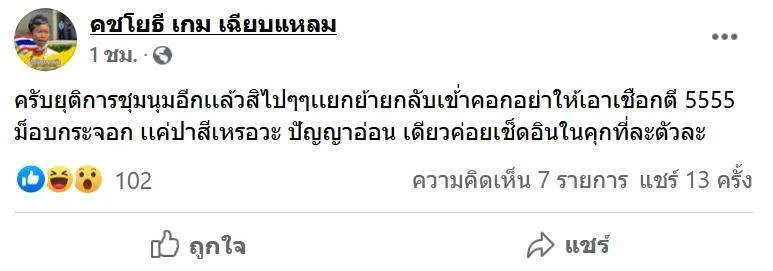 "คชโยธี" โพสต์เดือด! ยุติการชุมนุมแล้วให้แยกย้ายกันกลับคอก ชี้ ม็อบกระจอก แค่ปาสี