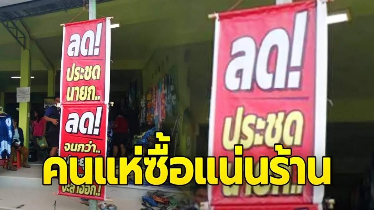 แม่ค้า ขึ้นป้ายลดราคาสินค้า