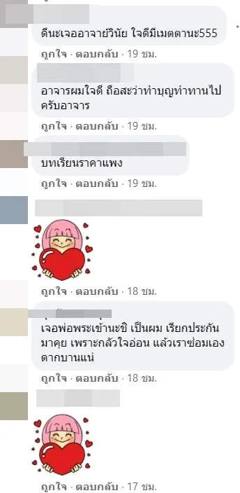 หลังจากที่เรื่องราวนี้เผยแพร่ออกไปยังโลกออนไลน์ ได้ผู้เข้ามาแสดงความคิดเห็นชื่นชมกับความดี ความมีใจเมตตาพร้อมกับเป็นห่วงความปลอดภัยของผู้โพสต์เป็นจำนวนมาก ว่าได้รับอันตรายบาดเจ็บตรงไหนหรือเปล่า นอกจากนี้ยังบอกอีกว่าเป็นความโชคดีของคู่กรณีโดยแท้ที่ผู้เสียหายไม่ได้เอาเรื่อง และตักเตือนคนที่เมาแล้วอย่าขับรถ เพราะจะเป็นการสร้างความเสียหายให้กับบุคคลอื่น