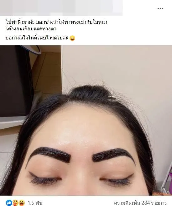 สาวขอกำลังใจ! ไปทำคิ้วมา บอกช่าง เอาทรงเข้ากับใบหน้า เสร็จ คิ้วโค้งงอนเกือบแตะหางตา