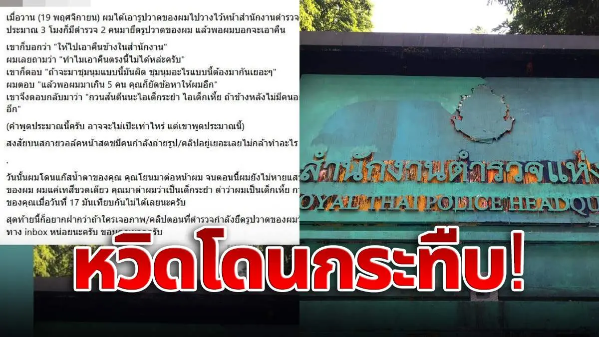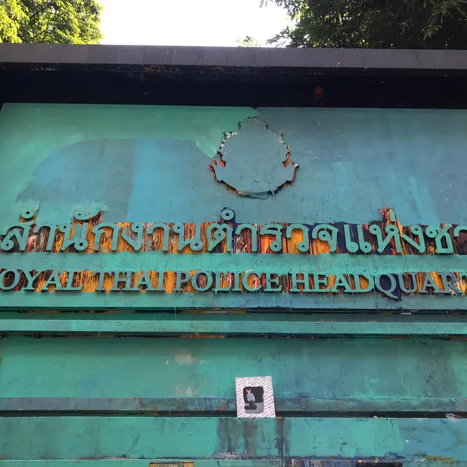 หนุ่มเอารูปวาด วางหน้าสำนักงานตำรวจแห่งชาติ โดนตำรวจด่า หวิดโดนกระทืบ โชคดีมีคนเยอะ
