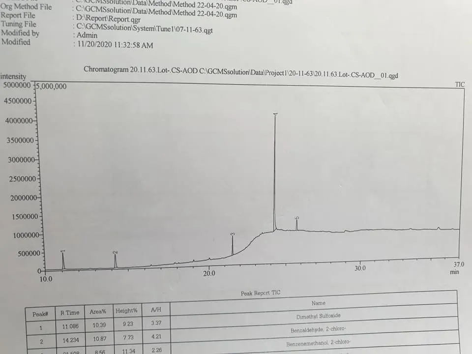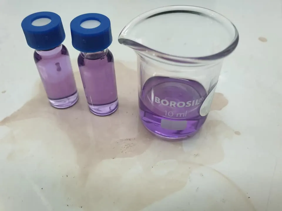อาจารย์อ๊อดเอาสารละลายสีม่วง ที่ได้มาวิเคราะห์ด้วยเทคนิค gc-ms (Gas chromatography–mass spectrometry (GC-MS)) พบว่าสีม่วงคือ Methylviolet 2b (เมทิลไวโอเลททูบี) ซึ่งเป็นสีม่วงธรรมดา ไม่มีพิษภัยอะไร และเจอสาร สำคัญ 5 ตัว ในสารละลายสีม่วงนั้น คือ