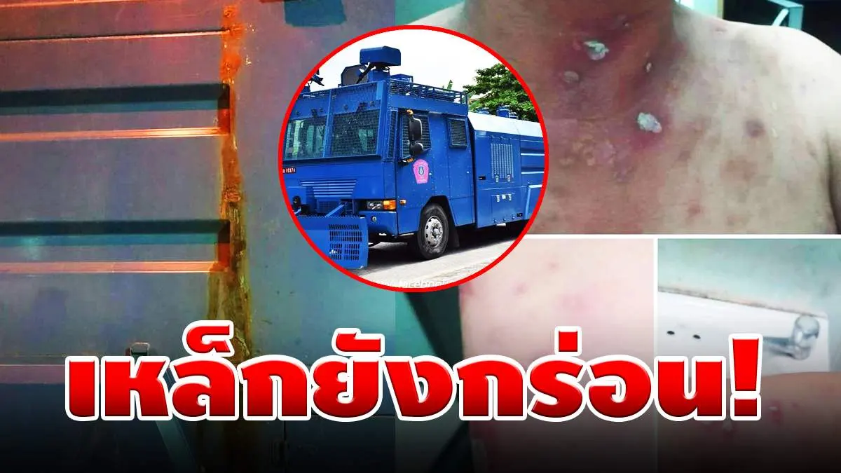 เปิดสภาพรถน้ำสีม่วง! โดนน้ำสารเคมีที่มาฉีดประชาชน เหล็กยังผุกร่อน นับประสาอะไรกับผิวมนุษย์..