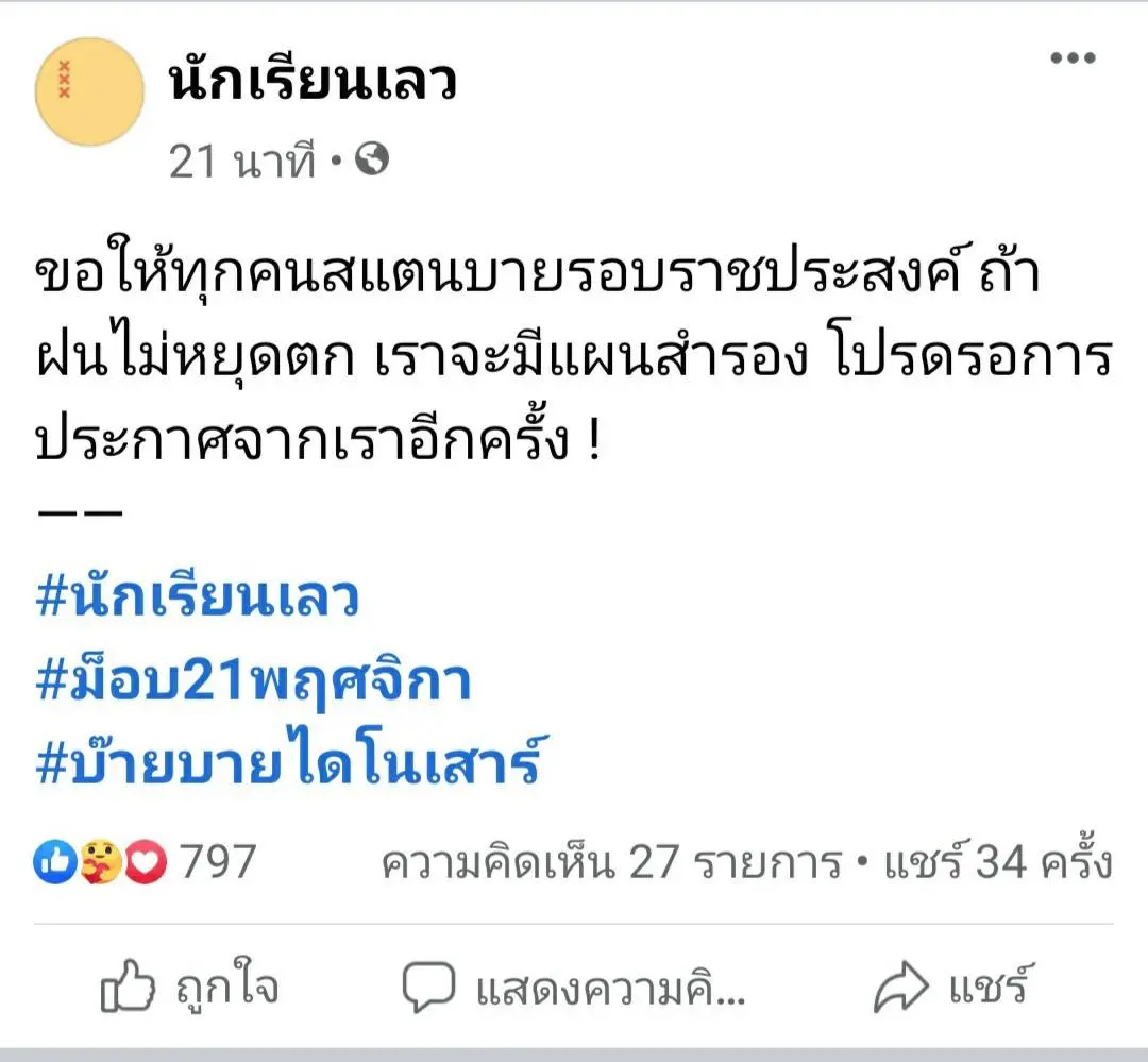 ฝนถล่มหนักแยกราชประสงค์! นักเรียนเลว แจ้งผู้ชุมนุม ให้สแตนบายรอ ถ้าฝนไม่หยุดมีแผนสำรอง