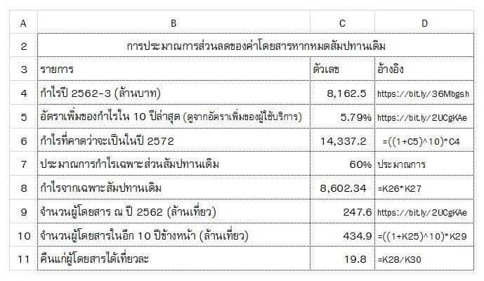 - ดังนั้นกำไรที่คาดว่าจะเป็นในปี 2572 เมื่อหมดสัมปทานช่วงแรก จึงควรเป็น 14,337.2 ล้านบาท