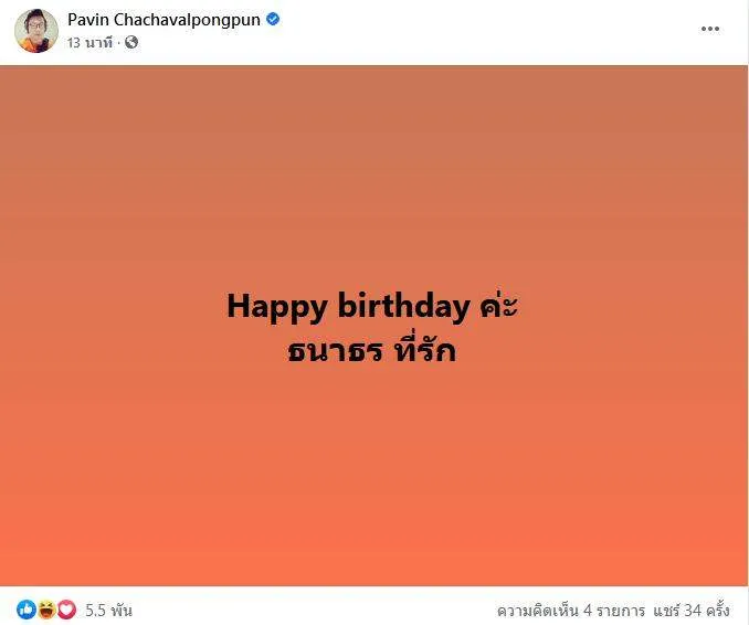 "อ.ปวิน" โพสต์ Happy birthday ธนาธร สุดที่รัก