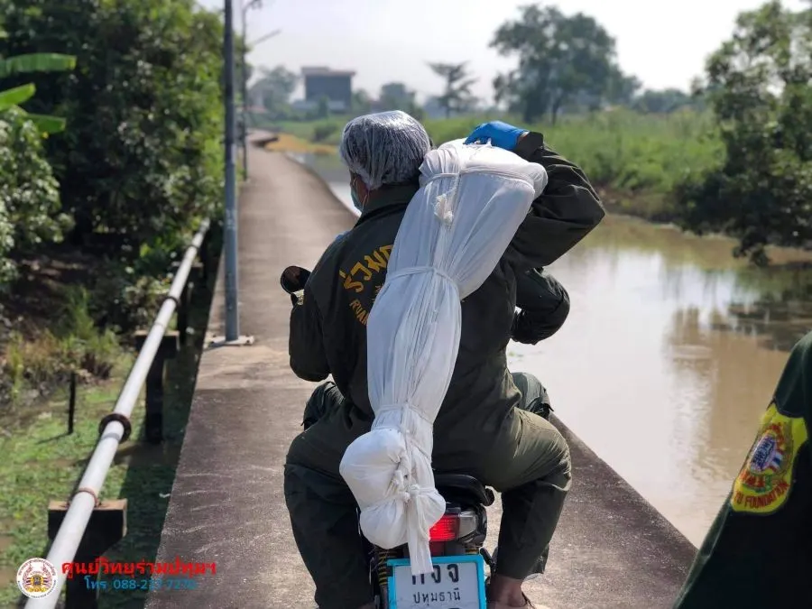 ทั้งนี้ บริเวณที่เกิดเหตุนั้น เป็นถนนสะพานปูนเลียบคลองแคบ ห่างจากถนนประมาณ 500 เมตร รถที่สามารถสัญจรผ่านได้มีเพียงรถจักรยานยนต์เท่านั้น เจ้าหน้าที่กู้ภัยจึงต้องขับรถจักรยานยนต์เข้าไป เพื่อไปแบกร่างผู้เสียชีวิตออกมา ก่อนที่จะส่งต่อให้สถาบันนิติวิทยาศาสตร์ โรงพยาบาลธรรมศาสตร์ เพื่อชันสูตรหาสาเหตุการเสียชีวิตต่อไป