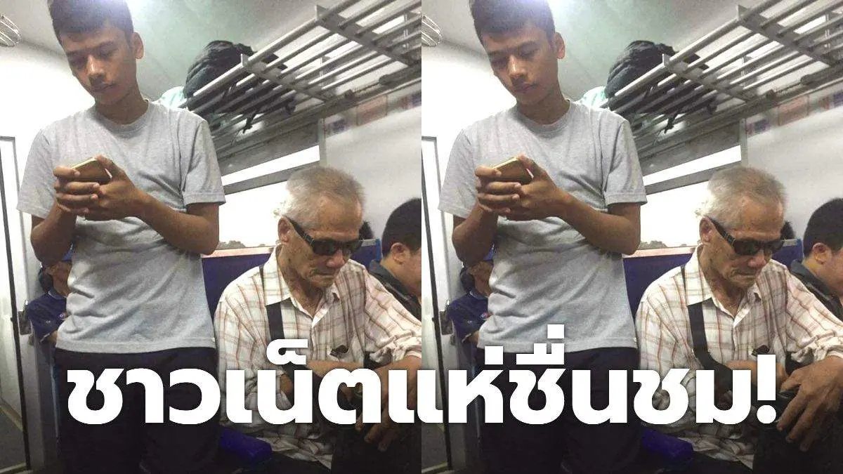 ชื่นชม! หนุ่ม พาคุณตาพิการทางสายตา มานั่งที่ของตนแทน หลังคุณตา ถูก จนท.ทวงที่นั่ง
