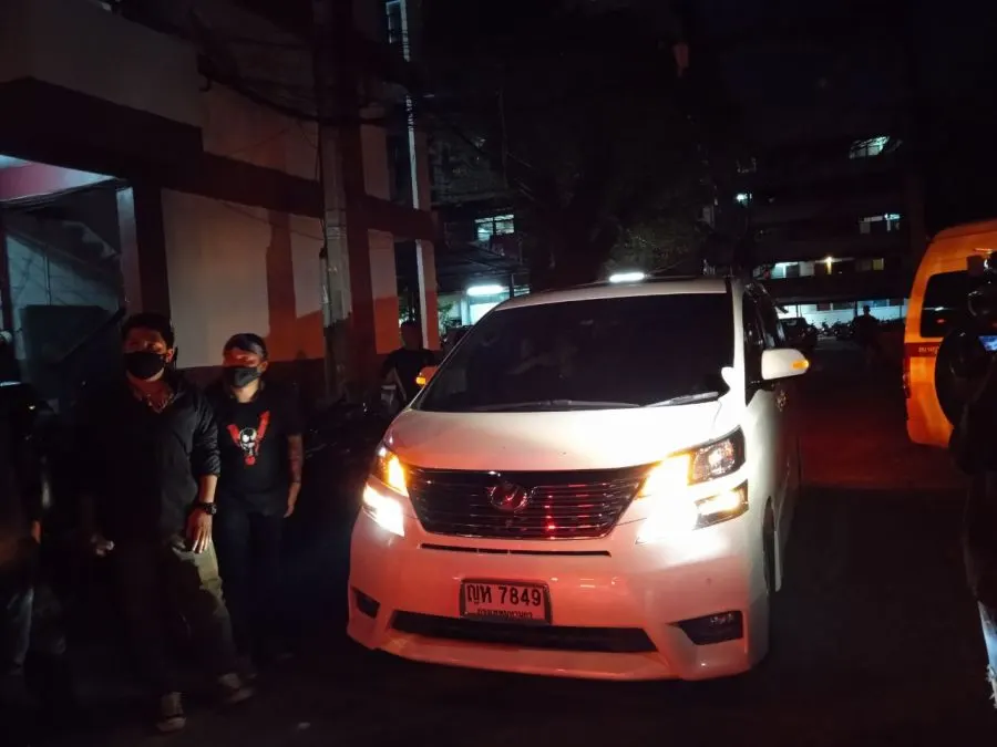 19.15 น. ครูใหญ่ อรรถพล ขึ้นรถยนที่ตำรวจเตรียมไว้ให้ ทะเบียน ญห7849 กทม พร้อมกับผู้ไว้วางใจ และ @Chaithawat_MFP ออกจาก สน.พญาไท