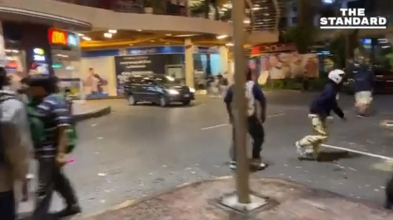 เปิดคลิปนาทีสุดช็อค! ชายต้องสงสัย ปาไปป์บอมบ์ ใส่กลุ่มผู้ชุมนุม ตามด้วยเสียงปืน กลางไลฟ์สด