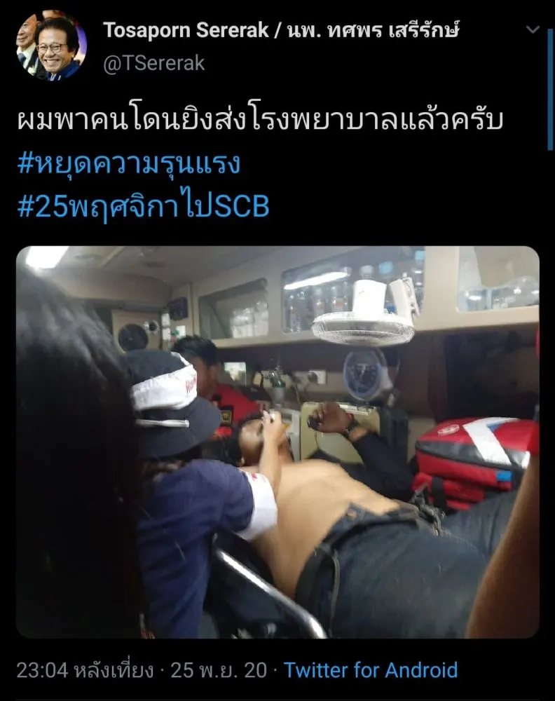 คนโดนยิงที่เป็นการ์ดโดนเข้าที่ท้องส่งตัวที่ร.พ.พระรามเก้าอาการสาหัส