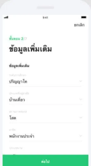 ตรวจสอบ และกรอก ข้อมูลต่างๆ สำหรับ การขอสินเชื่อ เช่น ข้อมูลส่วนบุคคล, ข้อมูลเพิ่มเติม, ข้อมูล เกี่ยวกับ สินเชื่อ ที่มีกับ สถาบัน การเงินอื่นๆ