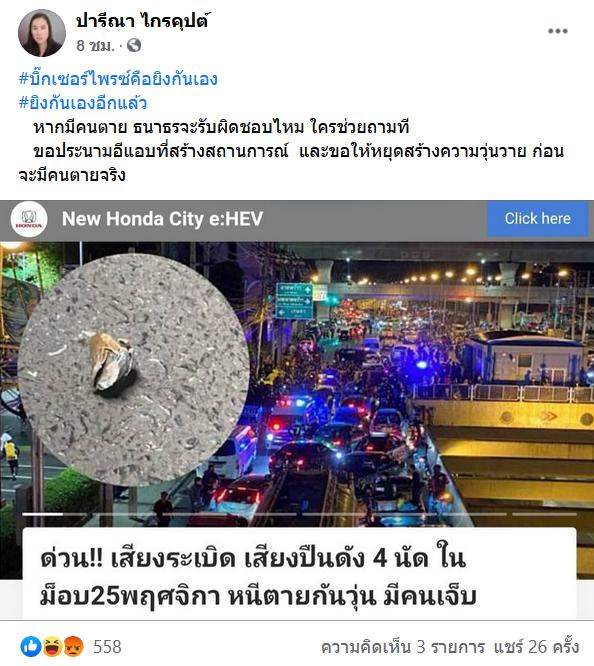 #บิ๊กเซอร์ไพรซ์คือยิงกันเอง #ยิงกันเองอีกแล้ว หากมีคนตาย ธนาธรจะรับผิดชอบไหม ใครช่วยถามที ขอประนามอีแอบที่สร้างสถานการณ์ และขอให้หยุดสร้างความวุ่นวาย ก่อนจะมีคนตายจริง