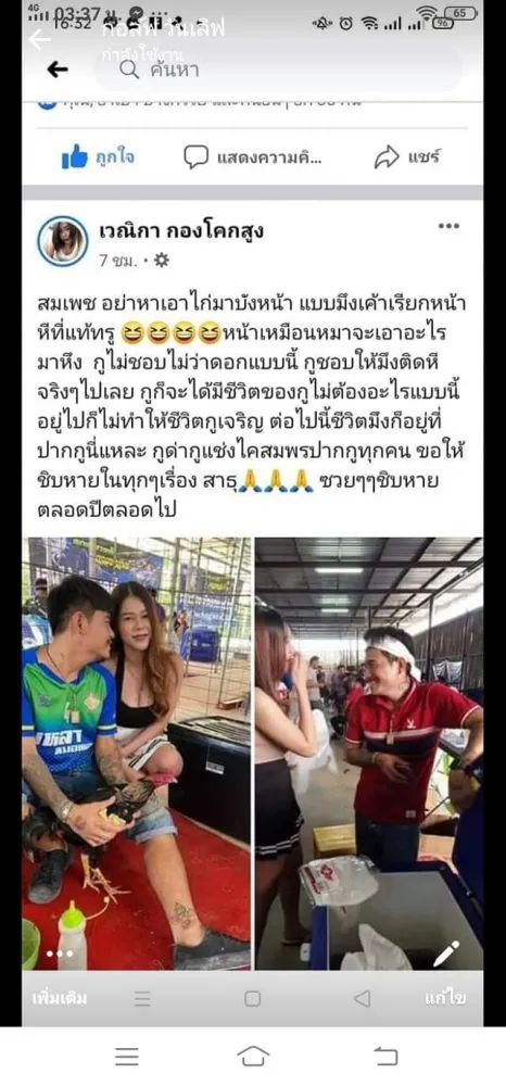 จากโพสต์สาวคนนี้ได้เขียนตำหนิสามีว่า เอาไก่มาบังหน้า ถ้าไม่ชอบก็คงไม่ว่าแบบนี้ อยากให้ติดผู้หญิงไปเลยจริงๆ ตนจะได้มีชีวิตใหม่ ไม่ต้องเจออะไรแบบนี้ ลงท้ายถึงสามีว่า ซวยๆๆ ตลอดปี
